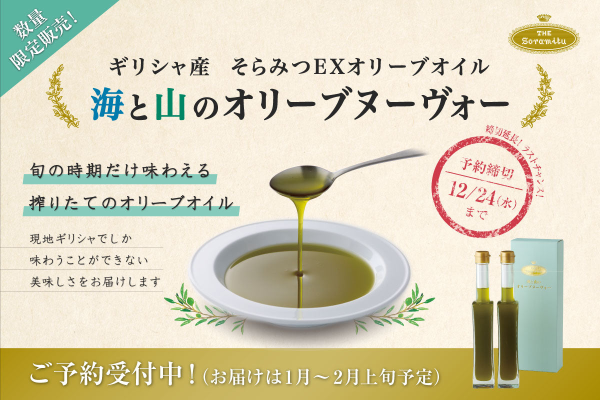 This thorough attention to the origin and variety of olives is the secret to the deliciousness of Soramitsu Olive Oil.